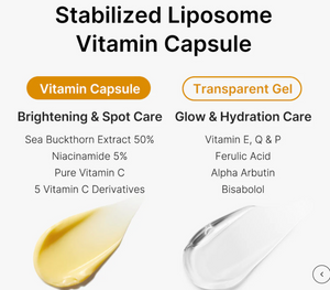 Our dual-texture cream is gentle yet effective, allowing you to tailor the formula to suit your skin's needs. Experience the power of stabilized liposome capsules, designed to enhance the delivery of Vitamin C to the skin for optimal results.