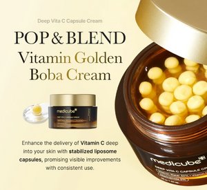 Introducing the Deep Vita C Capsule Cream, a revolutionary skincare solution designed to care for uneven skin tone and spots, leaving your skin bright, radiant, and even-toned. This customizable cream features a unique dual-texture formula, combining a Vitamin Capsule cream with a transparent gel.